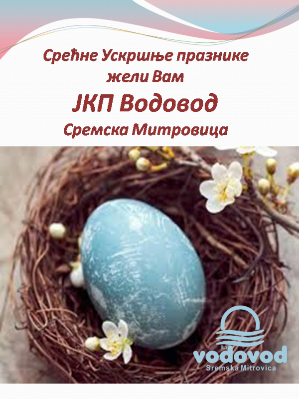 Корисницима наших услуга честитамо Ускршње и првомаjске празнике! Истовремено обавештавамо потрошаче да ће за време празника од 29.04.2016. до 04.05.2016. године бити организована дежурства, у циљу несметаног функционисања система водоснабдевања и одвођења отпадних вода. Евентуалне проблеме и кварове грађани могу […]